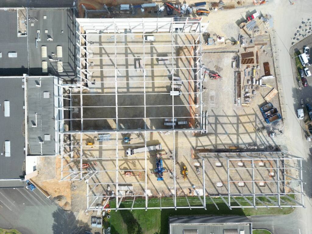 Les terrassements ont été achevés au deuxième trimestre 2025, et les travaux de préparation de la plateforme ainsi que l’assainissement du site sont en cours. La prochaine étape clé concernera la pose de la charpente et de la structure du bâtiment, suivie de la couverture et du bardage prévus pour le troisième trimestre 2025. Le chantier s’étendra sur environ 11 mois, avec une livraison finale prévue pour le premier trimestre 2026.
